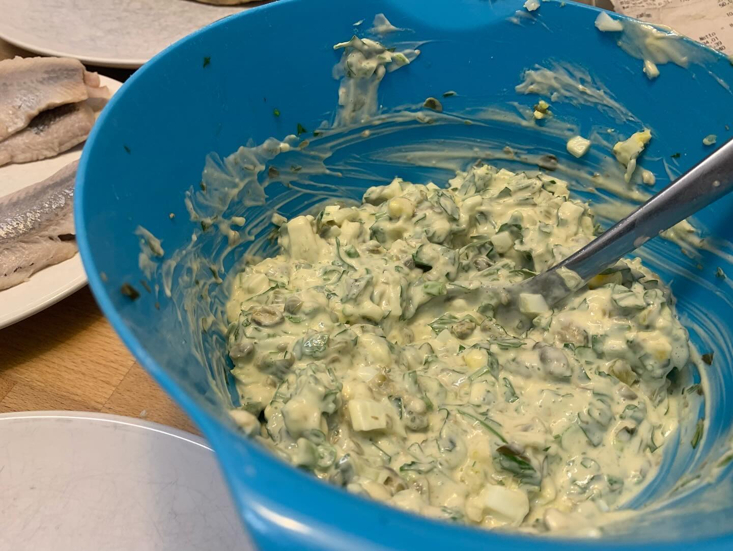 bild zu: matjes von lidl, brötchen nach plötzblog, remoulade und mayo nach chefkoch.