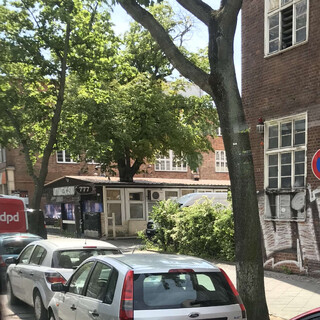 bild eines baum am kanal gegenüber dem behala-gelände der einen gespalten stamm hat und mit einem F markiert ist.