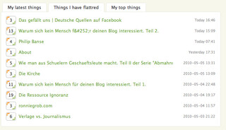 bei flattr kann man jetzt abonnements abschliessen und ein „ding“ für 3, 6 oder 12 monate automatisch flattern lassen. ich bin mal meine flattr-timeline durchgegangen und habe alle flatterbaren seiten die ich gerne regelmässig flattern würde …