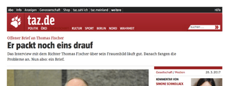 si­mo­ne schmol­lack woll­te ein por­trait über tho­mas fi­scher schrei­ben. der ist rich­ter und schreibt el­len­lan­ge ko­lum­nen auf zeit.de. die ko­lum­nen fin­de ich manch­mal be­tö­rend gut, manch­mal sau­doof und meis­tens igno­rie­re ich sie. das in­ter­view von …
