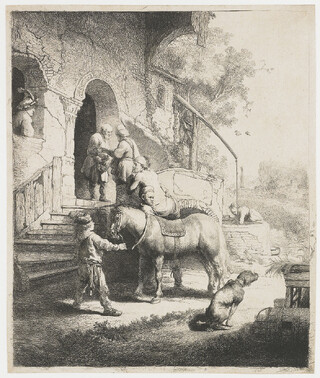schön. rembrands radierung „der barmherzige samariter“ von 1633 mit einem kackenden hund in der bildmitte. gefunden im perlentaucher efeu, wo auf christian thomas text zu einer rembrand-ausstellung im goethehaus frankfurt hingeweisen wird. dort …
