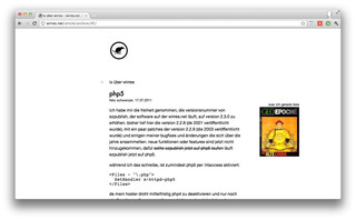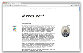 ich habe wirres.net mal ein bisschen umgestaltet. möglicherweise klappt noch nicht alles. wenn was kaputt ist oder nicht funktioniert, bitte einen kommentar hier drunter und ich reparier es. was ich wie und warum gemacht habe schreib ich später …