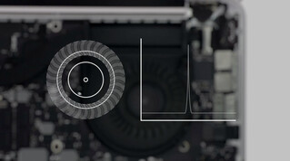 das neue mac­book pro mit be­son­ders hoch­auf­lö­sen­dem bild­schirm hat lüf­ter mit asym­me­trisch an­ge­ord­ne­ten flü­gel­rä­dern um den ge­räusch­pe­gel der lüf­ter zu sen­ken. oder wie ap­ple das in sei­nem schlecht über­setz­ten mar­ke­ting­sprech aus­drückt: