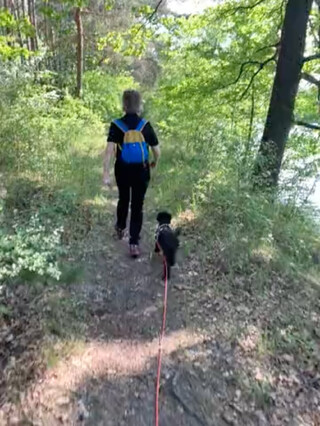 don’t wait for it — hier passiert gar nix — ausser dass frida im freilauf (mit schleppleine) das kommando „hinten“ sehr schön achtet und hinter der beifahrerin herläuft. das ist sehr entspannend für uns aber — wie man sieht — eher anstrengend für frida. sie …
