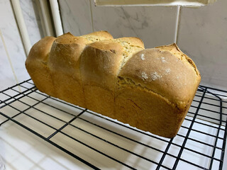 berliner toastbrot nach dem ploetzblog. irre feinporig obwohl nur 5 gramm hefe drin sind. kein glanz weil kein dampf. trotzdem köstlich.