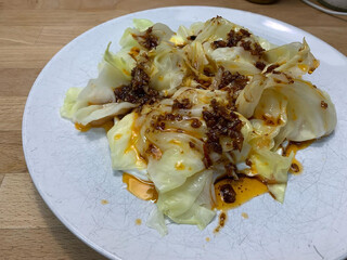 puh, das war lecker: blanchierter spitzkohl mit ingwercreme und „betäubendem öl“ nach ottolenghis „flavour“-kochbuch. ich hab den frischkäse als basis der ingwercreme durch quark ersetzt, was dem gericht glaube ich nicht geschadet hat. bei der zubereitung und dem anrichten dachte ich noch, ob das schmeckt? und es war hammer-lecker. der kohl und die creme/der quark ergänzten sich bestens und das würz-öl verdoppelte das vergnügen.