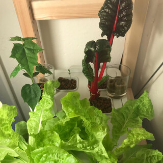 #ikeaväxer woche 20: der mangold geht ab, die zweite generation rauke auch, koriander macht sich und die basilikums sind teilweise monströs. unten noch ein paar salate, unter anderem endivie vielversprechend. jedenfalls gibt’s jetzt bald mangoldauflauf.