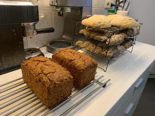 produktiver tag heute, zwei fluffige, sehr feinporige toastbrote, zwei roggenvollkornbrote, aus den eier resten baisier und fürs abendessen dürums zum einrollen des abendessens.