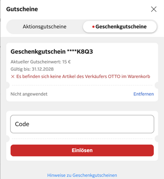 beim gutscheineinlösen beklagt sich der warenkorb: