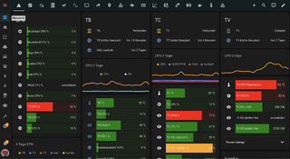 ansonsten, wie gesagt, nutze ich dashboards vor allem fürs monitoring, administrieren, konfigurieren. sehr nützlich finde ich die übersicht meiner „serverfarm“ . die kenndaten der wichtgsten systeme die hier im hintergrund laufen. hier nutze ich vor allem die mini-graph-card und die bar-card.